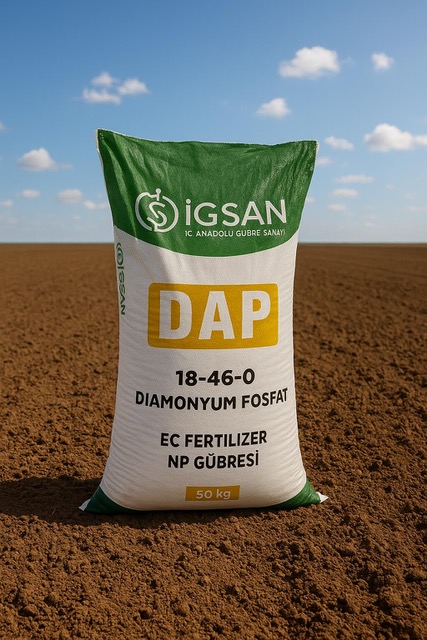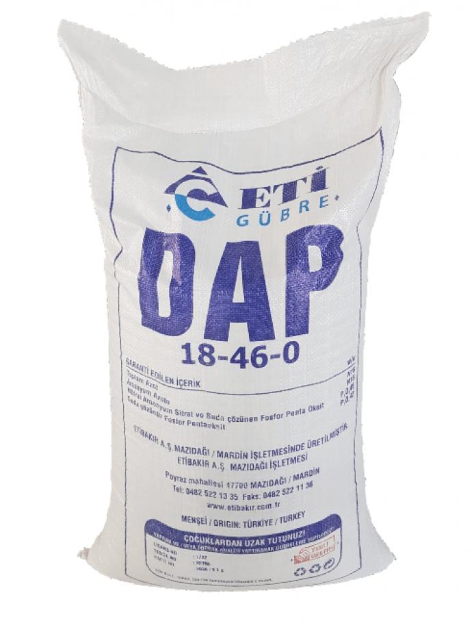 DAP (Diamonyum Fosfat) gübresi %18 N, %46 P2O5 kompozisyonuna sahip olup iki besinli bir kompoze gübredir. Fosforlu gübre kaynağı olarak kullanılmasının yanında, içeriğindeki azot, amonyum (NH4+)formunda olduğundan toprakta kolayca tutulur ve aşırı yağış veya sulama nedeniyle topraktan yıkama ile azot kaybı olmaz.
